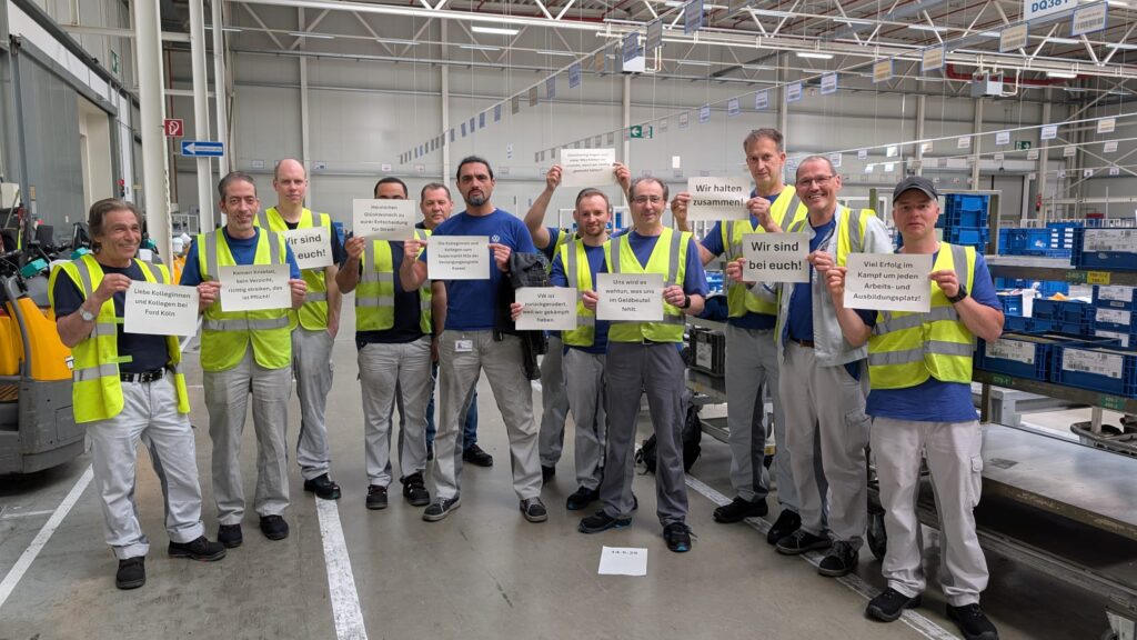 Solidaritätserklärungen können an kontakt (at) ford-igmetall (dot) de und an koeln-leverkusen (at) igmetall (dot) de zugestellt werden